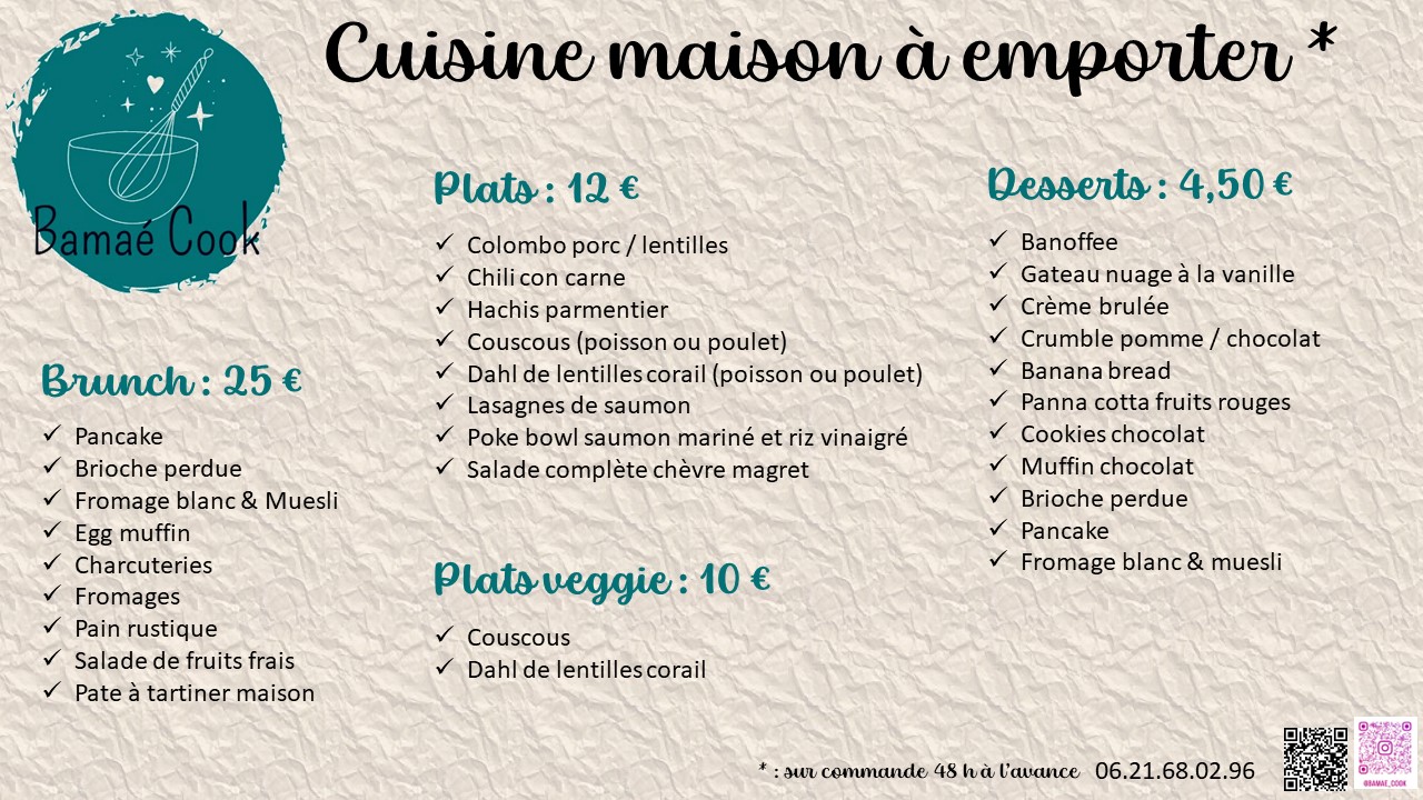le food-truck Bamaé Cook sera à SERVIES à partir du mercredi 28 Juin 2023 de 18h30 à 21h00.